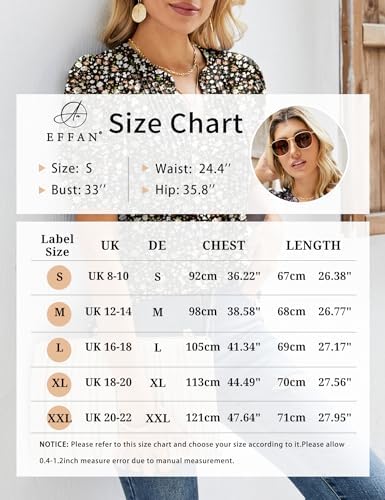 EFFAN Womens Summer V Neck Tops Puff Short Sleeve T-Shirt Pleated Floral Printed Tunic Blouse Shirts